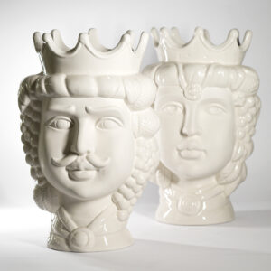 La Testa di Moro è un simbolo iconico della tradizione siciliana, legato a una leggenda di amore e gelosia nata durante la dominazione araba. La storia racconta di una giovane donna che, scoprendo il tradimento del suo amante moro, lo uccise e ne trasformò la testa in un vaso dove piantò del basilico, simbolo di passione e fertilità. Oggi queste raffinate ceramiche rappresentano l’identità siciliana, evocando bellezza, mistero e artigianalità senza tempo.