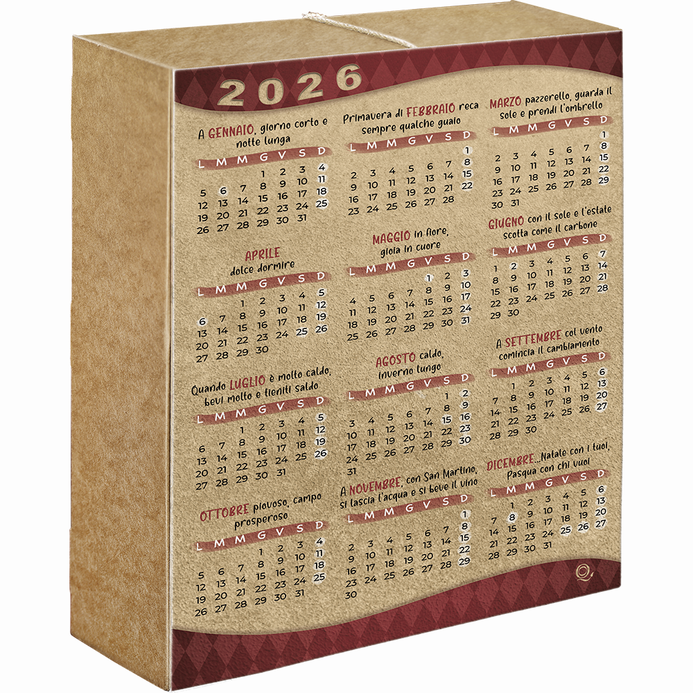Una scatola regalo dallo stile unico, con coperchio in legno che si trasforma in un originale quadro decorativo, completa di due bottiglie di vino personalizzate e carte da gioco.