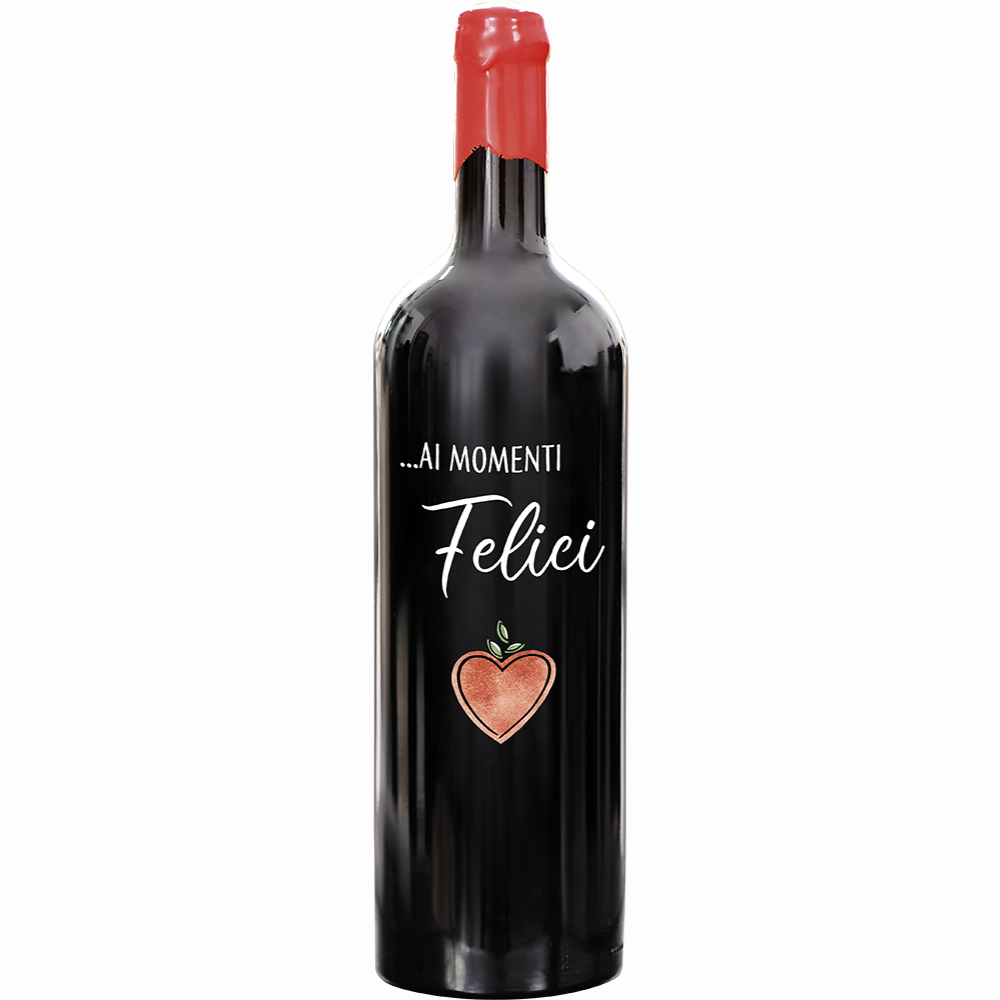 Una scatola regalo dallo stile unico, con coperchio in legno che si trasforma in un originale quadro decorativo, completa di una bottiglia di vino personalizzato.